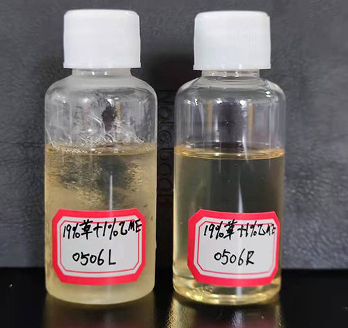 由于草銨膦加乙羧對雜草的細嫩部分具有速效性明顯和枯焦的作用,并且可以延緩雜草抗藥性的產生,起到增效作用,在殺草譜方面可以互補,所以草銨膦加乙羧復配的微乳劑在市場上占有跟大的份額,但此劑型在低溫條件下容易渾濁,熱儲容易出現熒光,針對此類常見問題,我公司特推出一款KY-ME8191M可以解決上述問題。